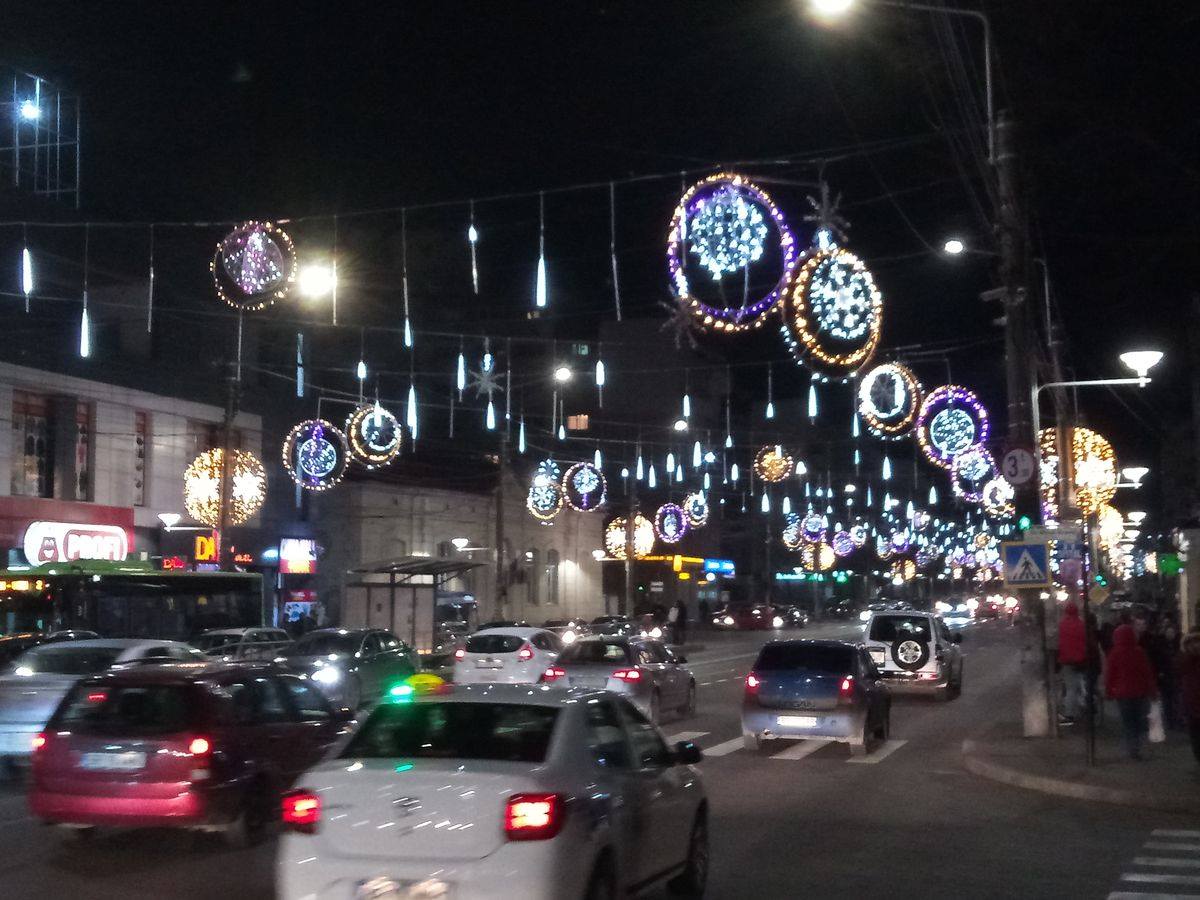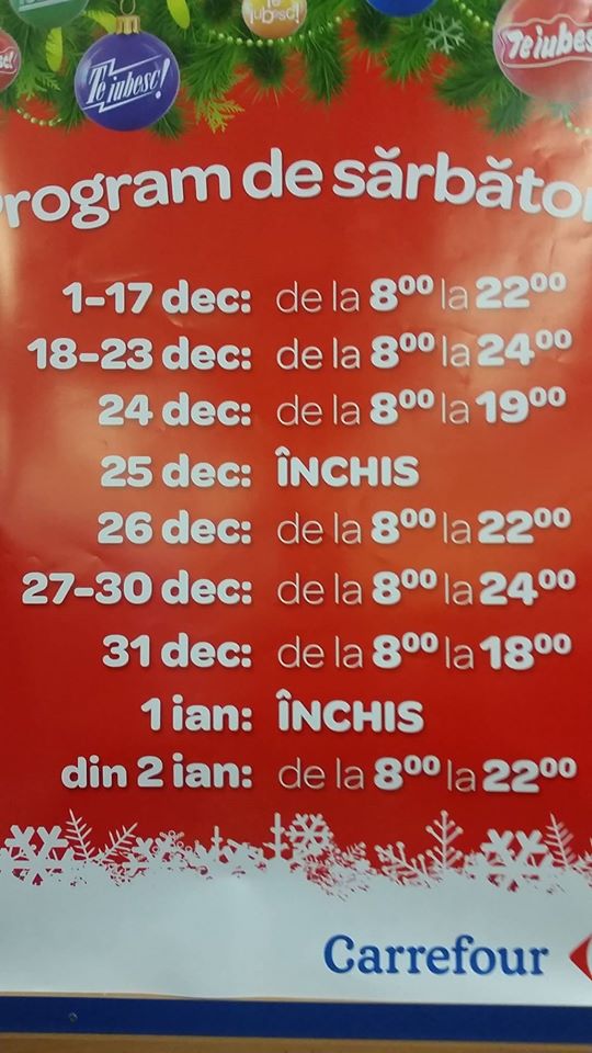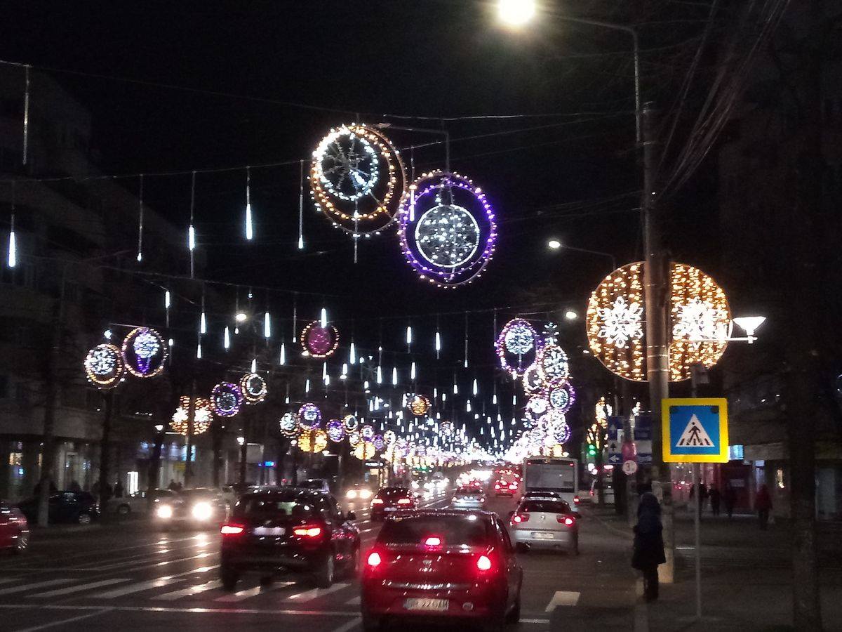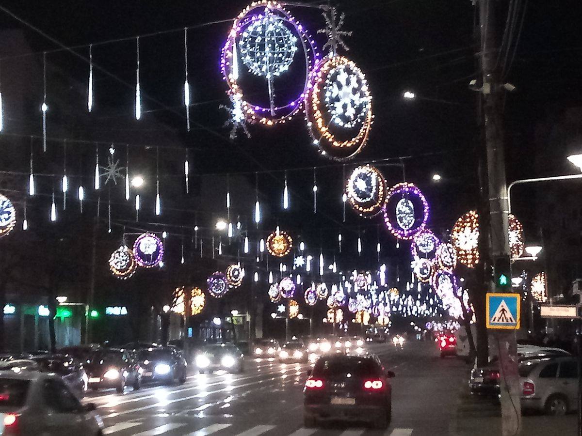 Dies bedeutet Lichter, Süssigkeiten, Weihnachtsstimmung und Menschen überall… und Lichter, Lichter, Lichter ! Anbei einige Bilder der (Strassen-) Beleuchtung in Braila und Galati im Südosten von Rumänien, kein Schnee aber es „weihnachtet“ überall. Wer zu den vielen regionalen Süssigkeiten noch Dinge aus Deutschland braucht, auch original deutsche Lebkuchen sind kein Problem. Und wenn man sich einmal an die Öffnungszeiten der Geschäfte (letztes Bild in rot) in Rumänien gewöhnt hat, für Deutschland unvorstellbar! Einkaufen ist hier nicht nur einkaufen, es bedeutet auch Freunde sehen und einfach zusammen sein !