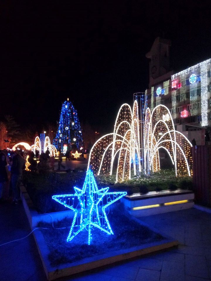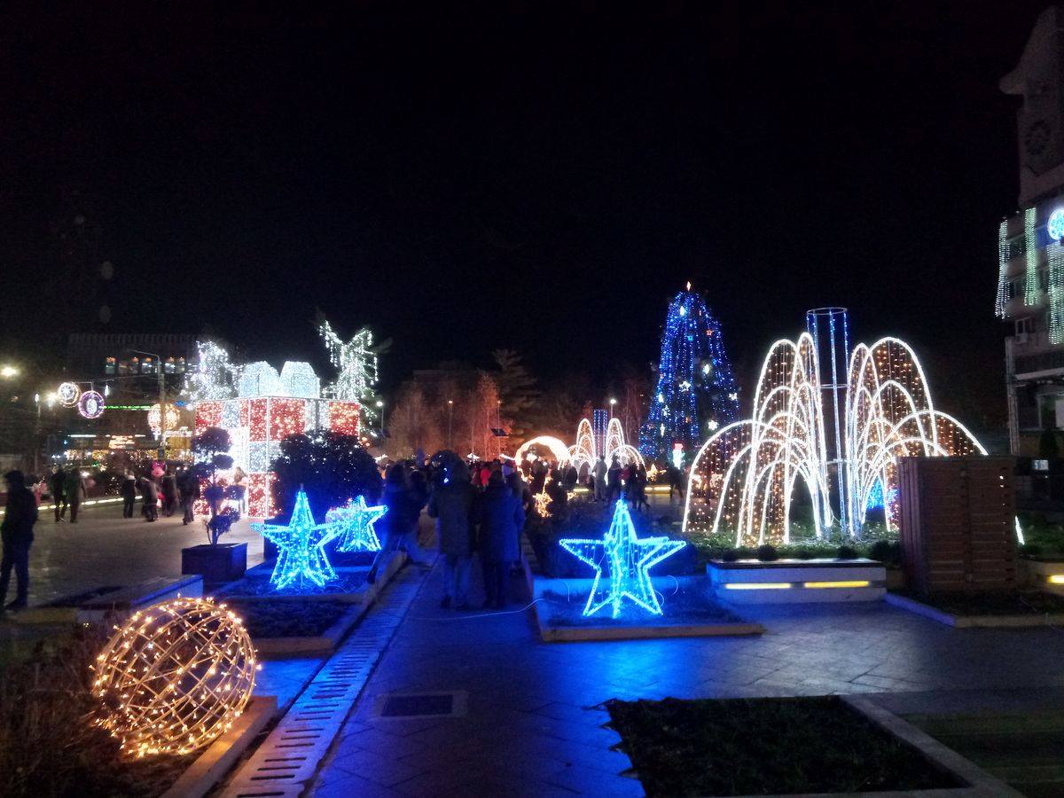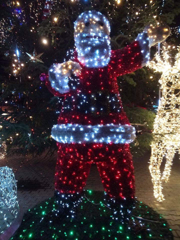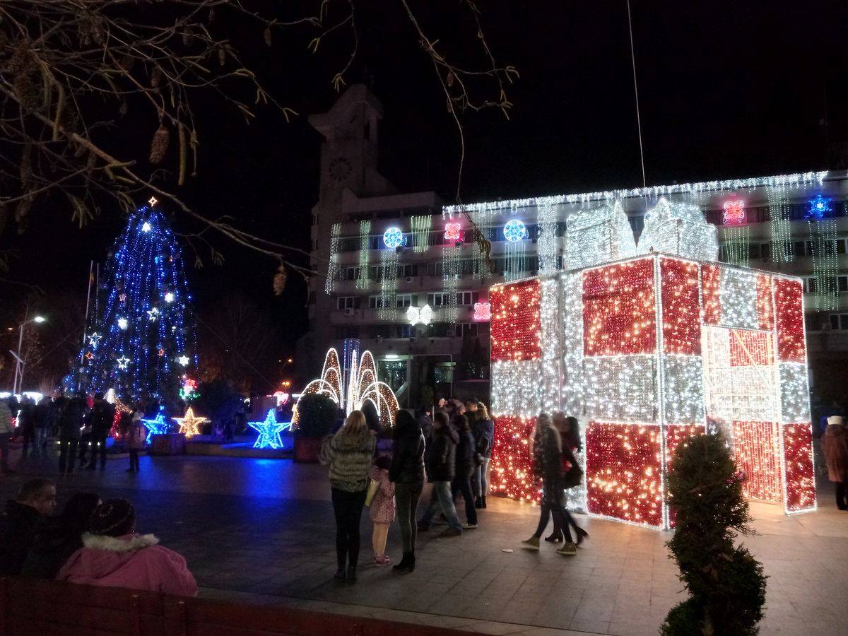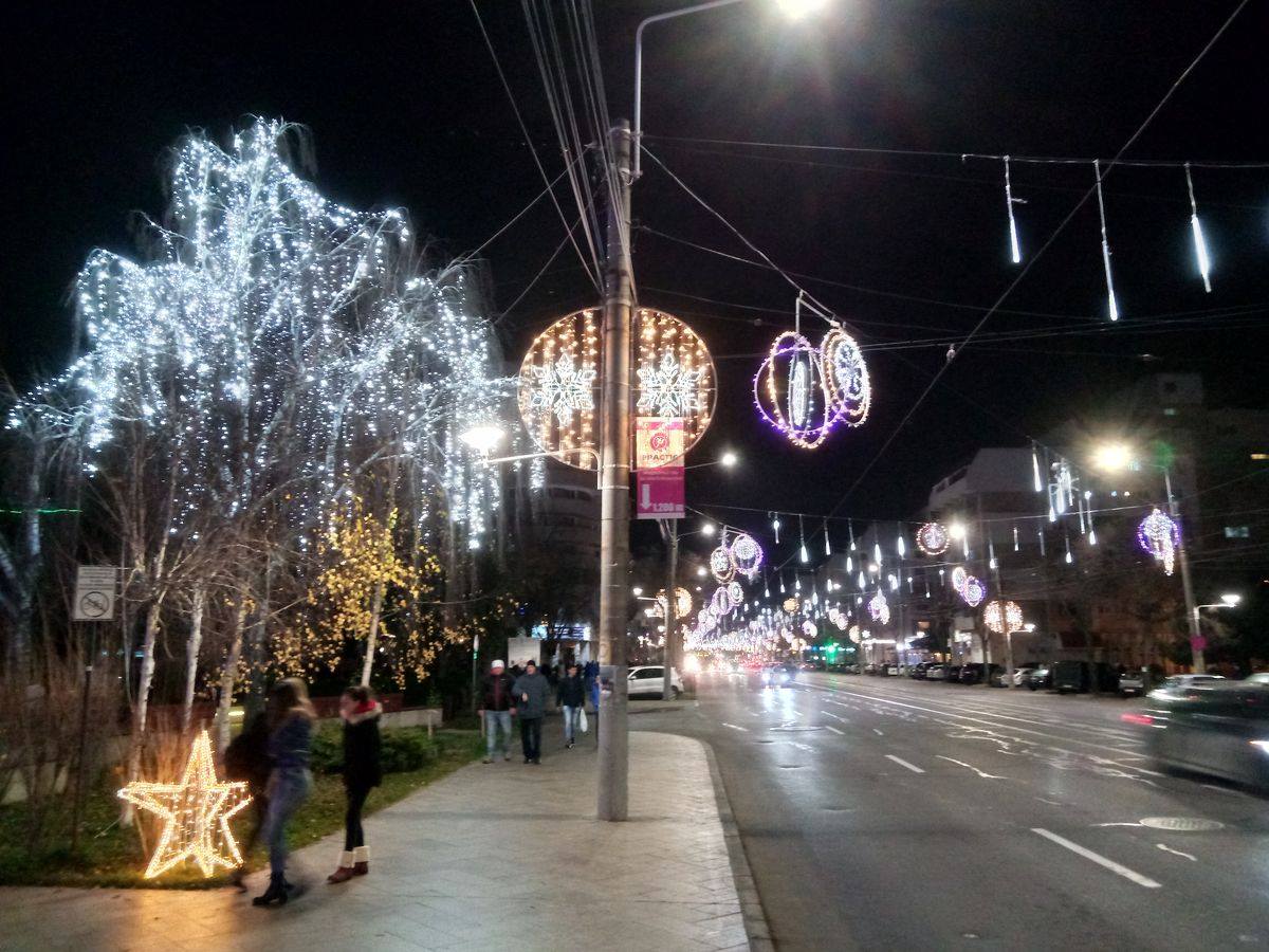 Dies bedeutet Lichter, Süssigkeiten, Weihnachtsstimmung und Menschen überall… und Lichter, Lichter, Lichter ! Anbei einige Bilder der (Strassen-) Beleuchtung in Braila und Galati im Südosten von Rumänien, kein Schnee aber es „weihnachtet“ überall. Wer zu den vielen regionalen Süssigkeiten noch Dinge aus Deutschland braucht, auch original deutsche Lebkuchen sind kein Problem. Und wenn man sich einmal an die Öffnungszeiten der Geschäfte (letztes Bild in rot) in Rumänien gewöhnt hat, für Deutschland unvorstellbar! Einkaufen ist hier nicht nur einkaufen, es bedeutet auch Freunde sehen und einfach zusammen sein !