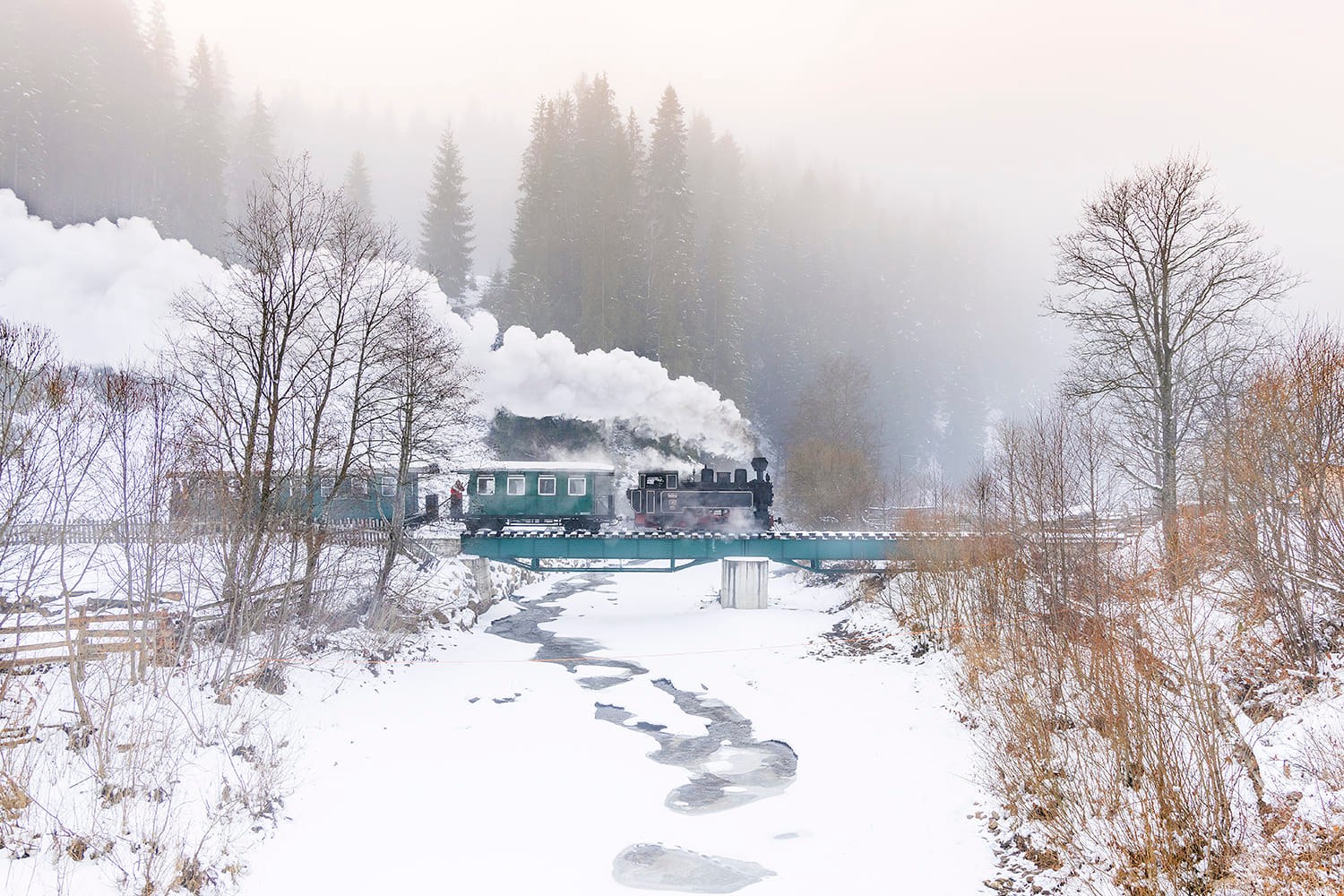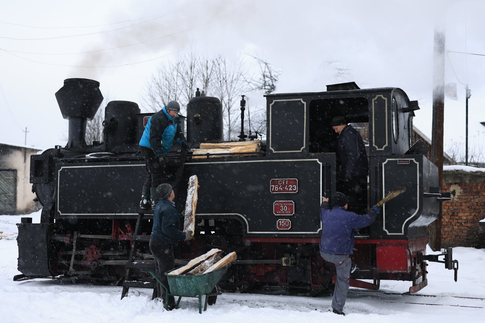 Die Schmalspur-Dampflokomotivenbahn Mocănița Huțulca Moldovița im Landkreis Suceava im Nordosten von Rumänien. Die Bahn fährt auch im Winter (Dezember 21 und Januar / Februar 2022) und die Fahrzeiten und Preise sind auf der Facebook-Seite ersichtlich.