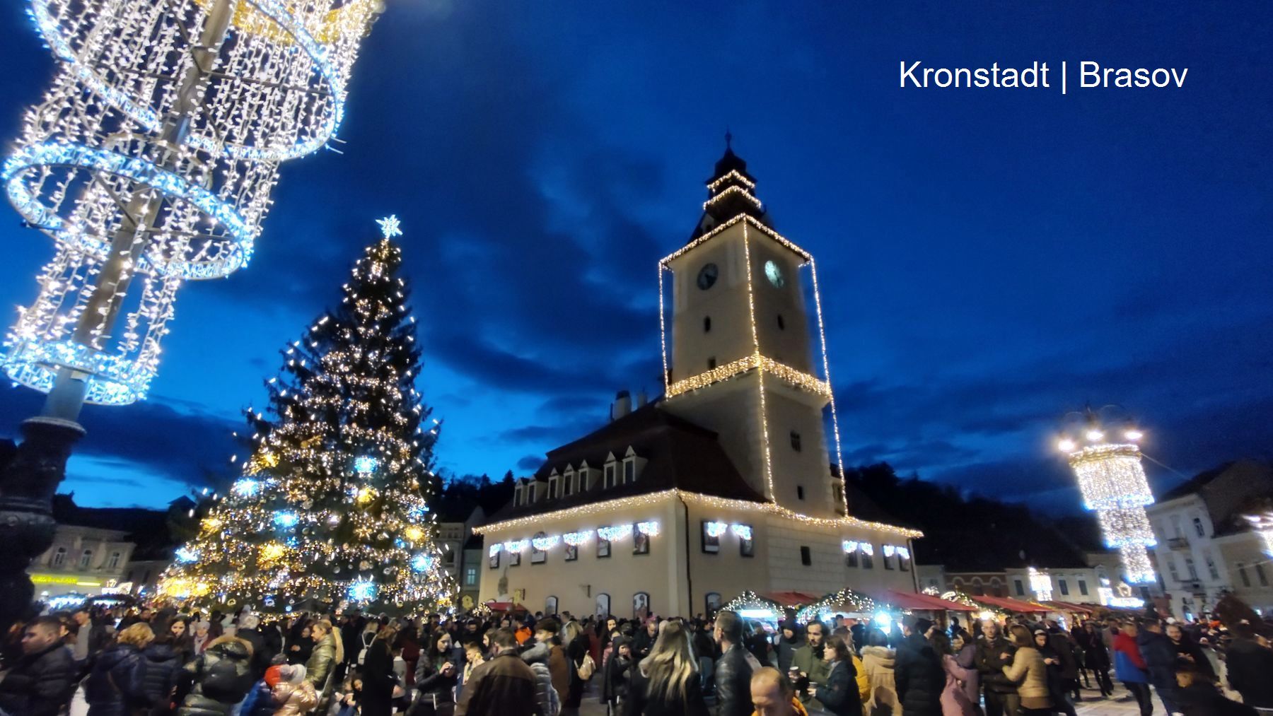 Weihnachtsmarkt in Kronstadt in Siebenbürgen. Weihnachtliche Stimmung, heißer Glühwein und viele, viele Leckereien warten auf den Besucher.
